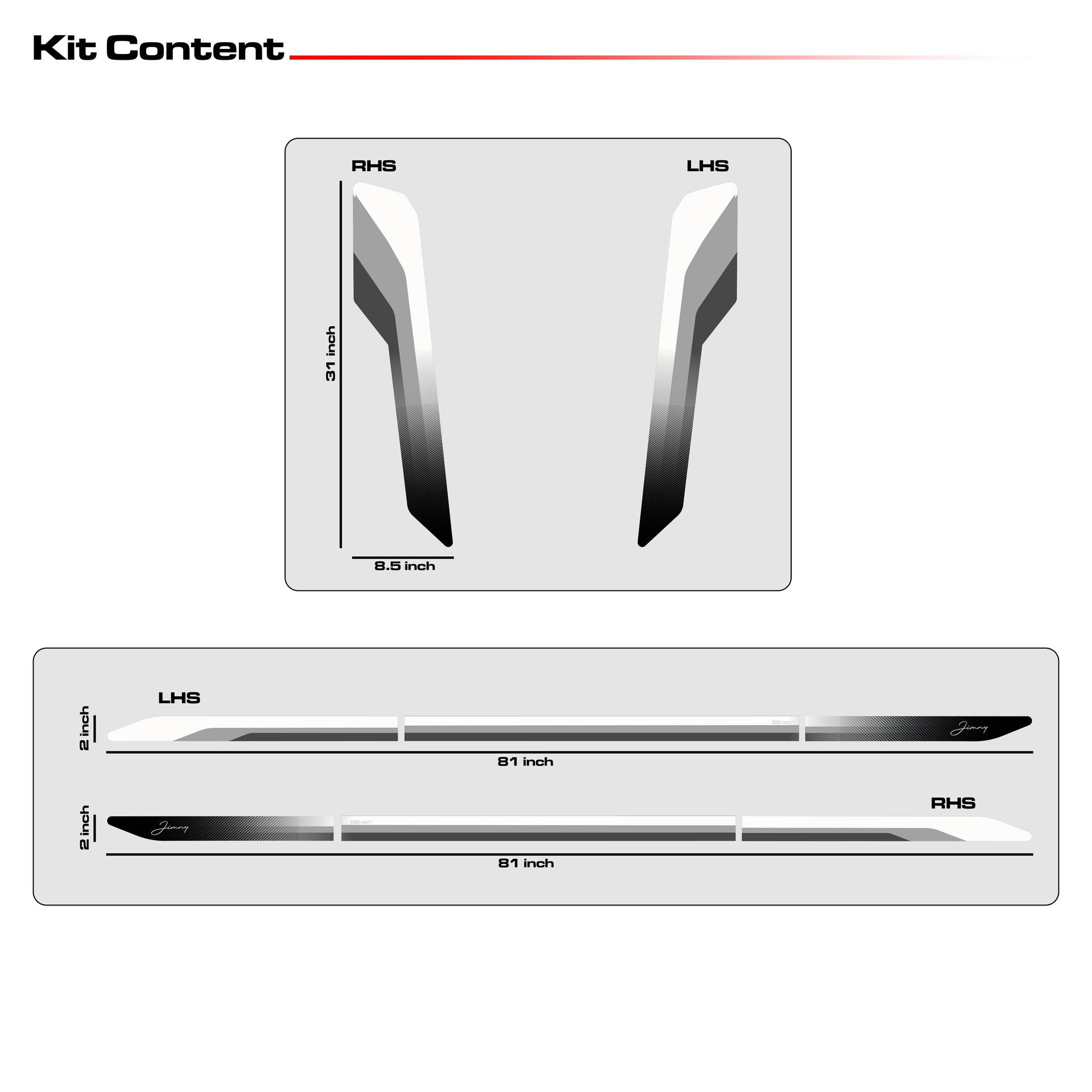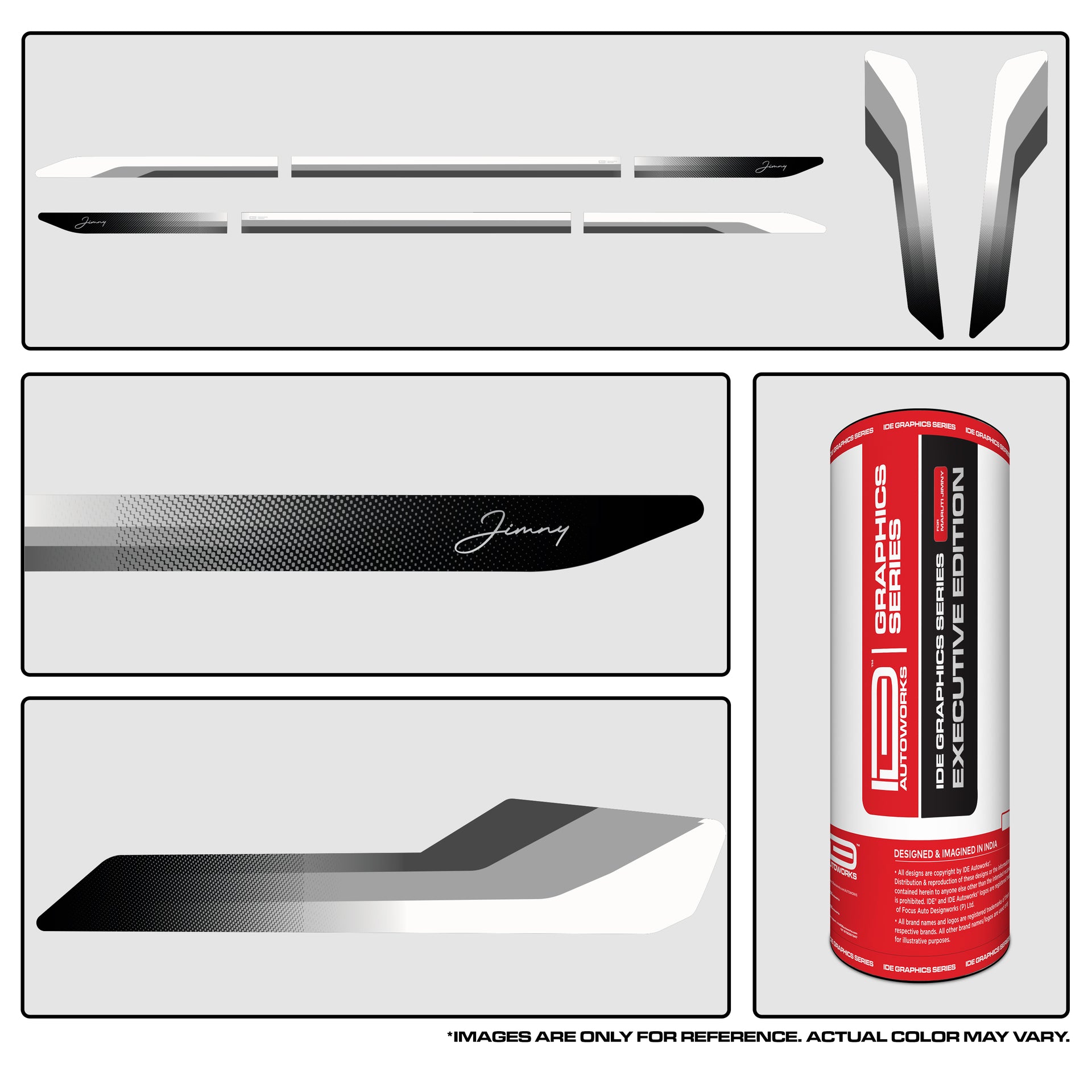 Elevate your Maruti Suzuki Jimny with the Executive Edition from our signature IDE Graphics Series. Designed for those who appreciate clean sophistication with an edge, this kit adds a premium, boardroom-meets-battlefield vibe to your rugged off-roader. Featuring sharp lines, balanced proportions, and vehicle-specific precision, it transforms your Jimny into a bold expression of style and authority — without compromising its wild spirit.