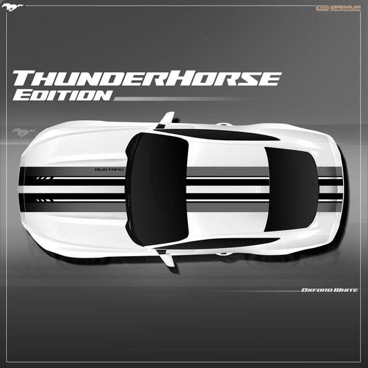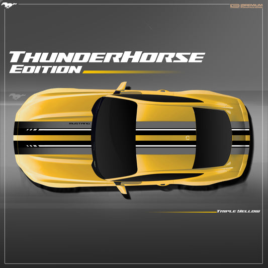 Unleash the power of the Mustang with this bold top stripe graphic, featuring dynamic cuts for a fierce, performance-driven appearance.