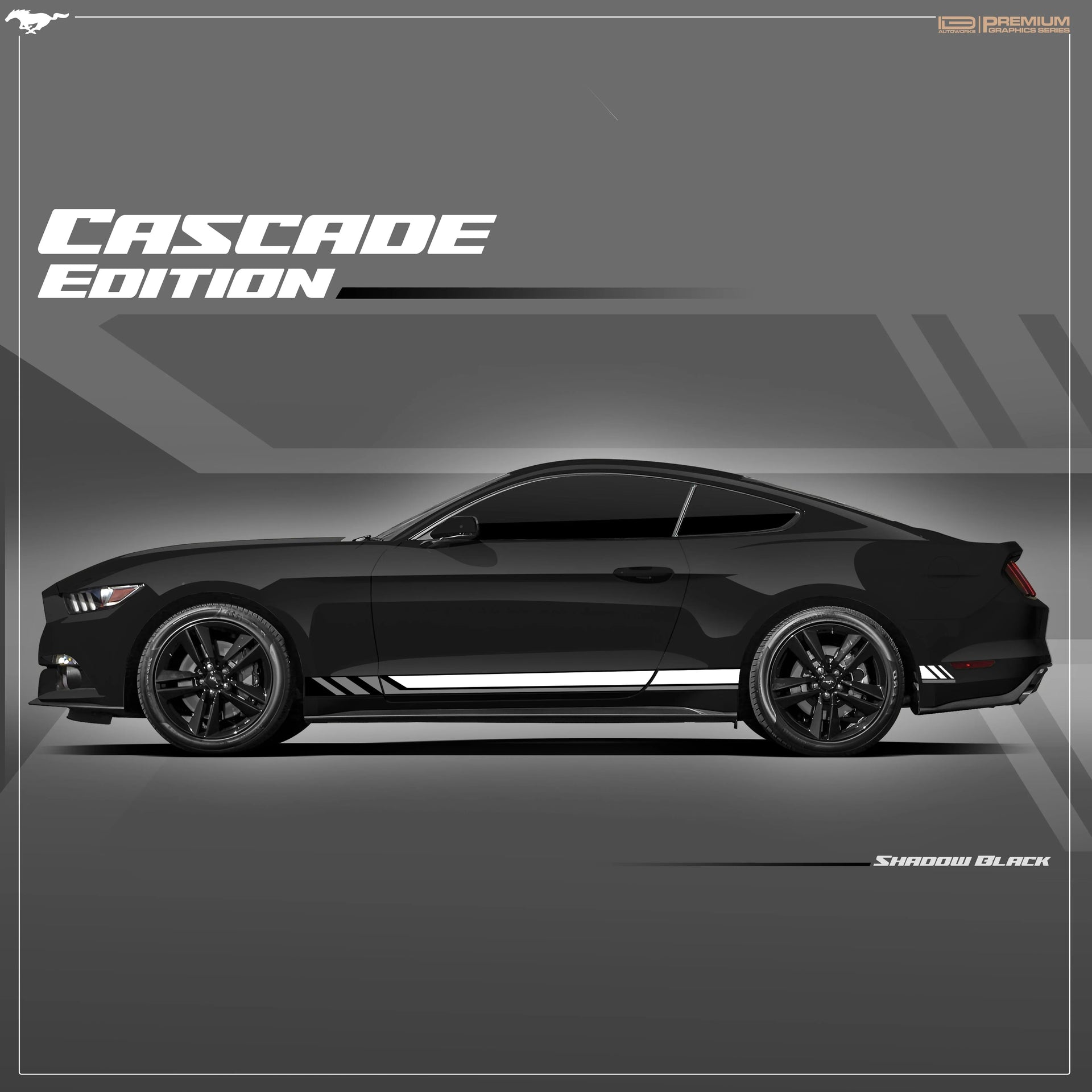 With long, flowing streaks, controlled tapering, and a performance-led side layout, the Cascade Edition enhances the Mustang’s presence with a clean yet powerful aesthetic — refined in detail, fierce in attitude, and unmistakably premium.