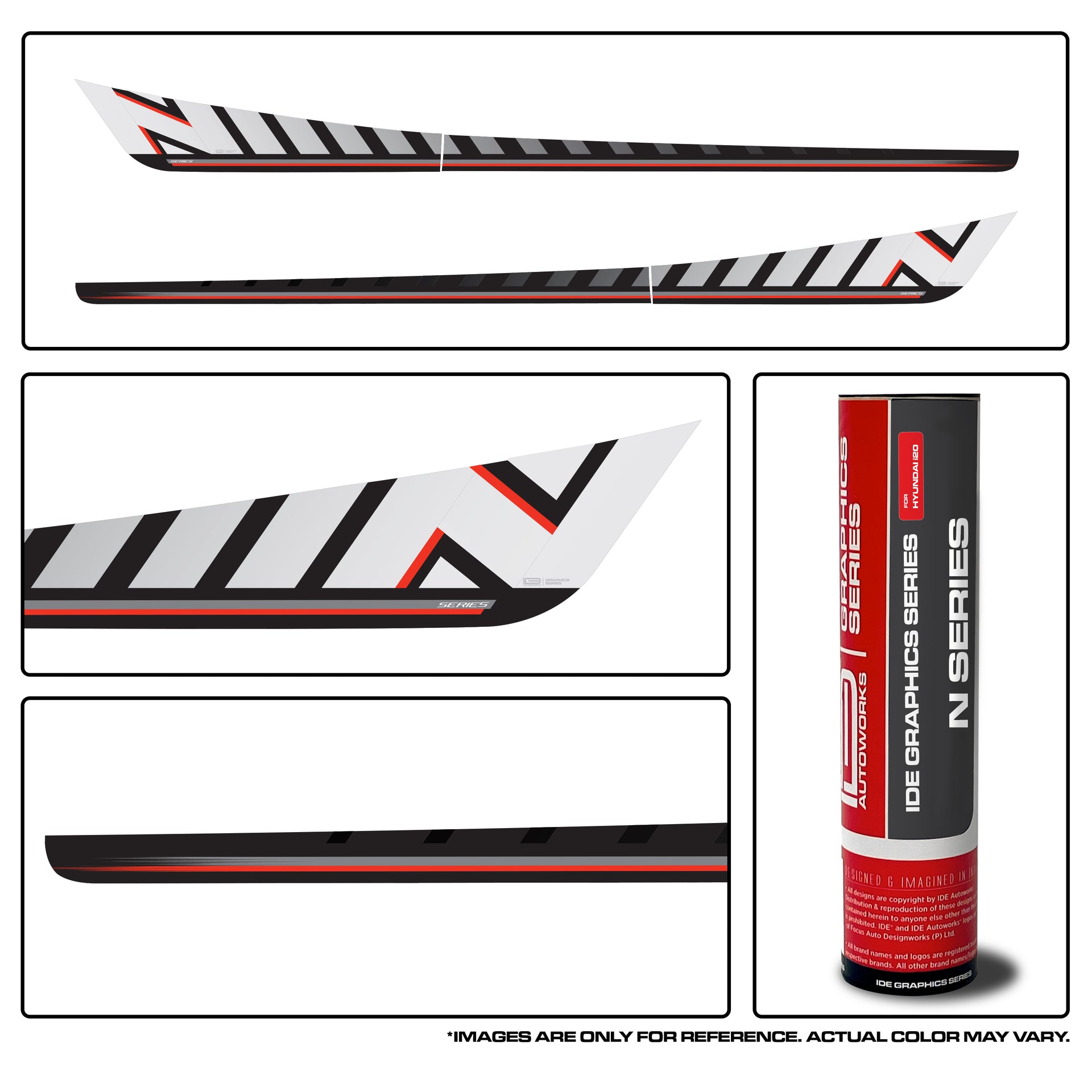 Elevate the style of your Hyundai i20 N Line with this bold, eye-catching graphic! Featuring a dynamic design with vibrant pop colors and a sleek gradient, this decal transforms your car into a statement on wheels. The graphic incorporates sharp, flowing lines that cleverly form the signature 'N' at the end, paying homage to the high-performance N Line series.