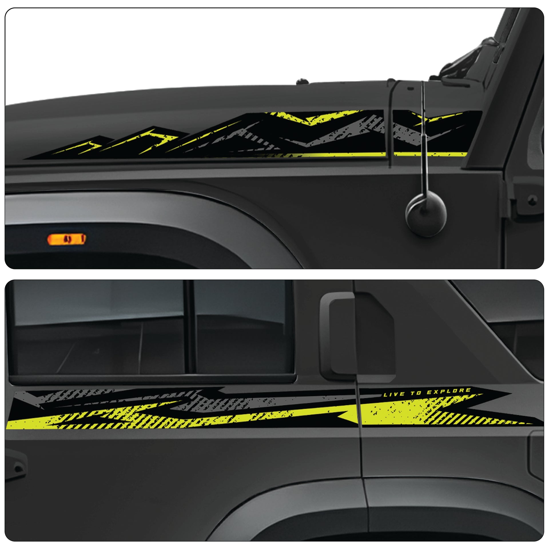 The Trail X Edition on Thar Roxx brings the spirit of adventure to life with its bold, rugged graphics designed to match the unstoppable energy of the Thar. Built for explorers and trailblazers, these decals elevate your ride, turning every journey into a striking statement of outdoor freedom.
