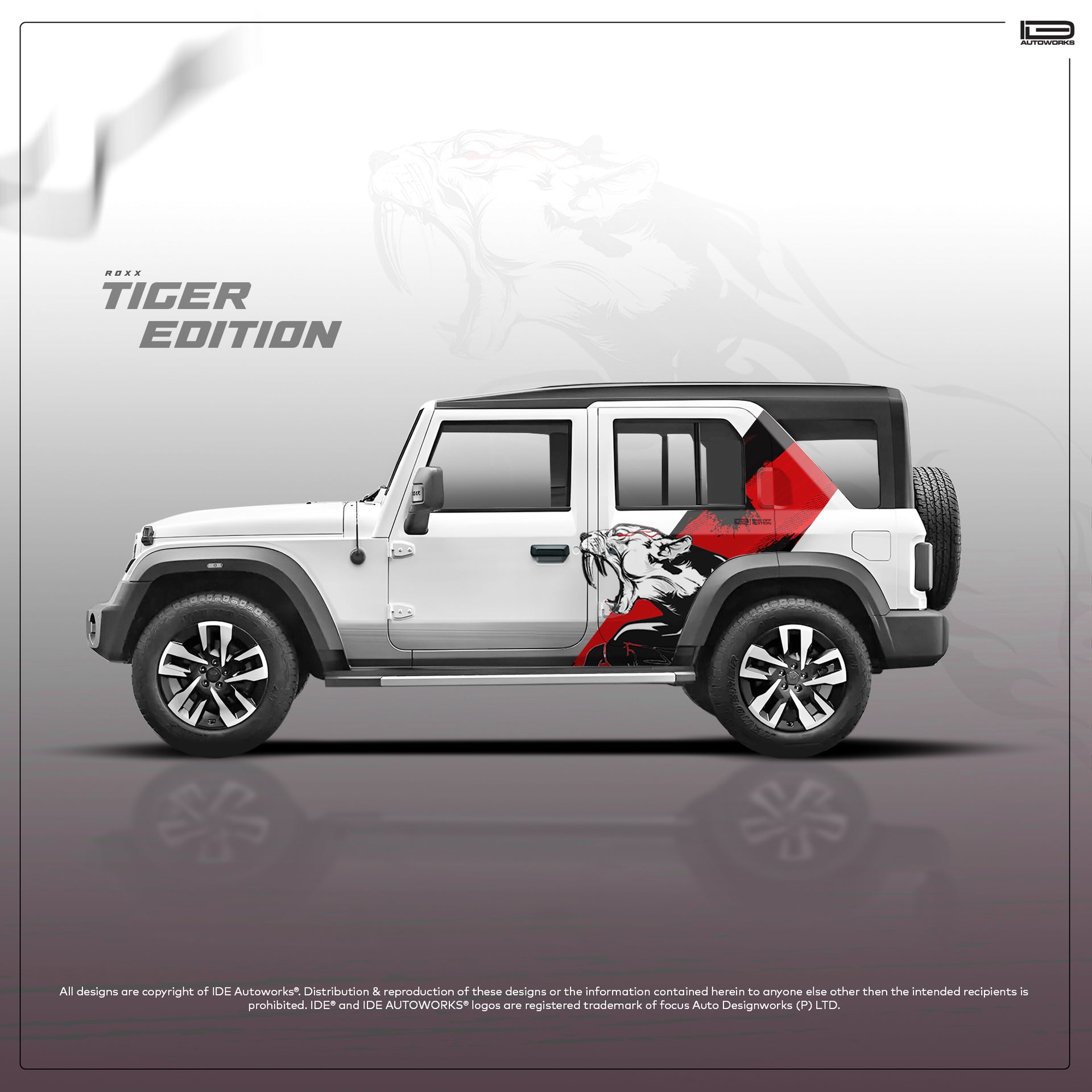 Unleash the beast with the Tiger Edition for the Mahindra Thar Roxx, part of the bold IDE Partial X Series — a design inspired by the power, agility, and majestic dominance of the wild tiger.