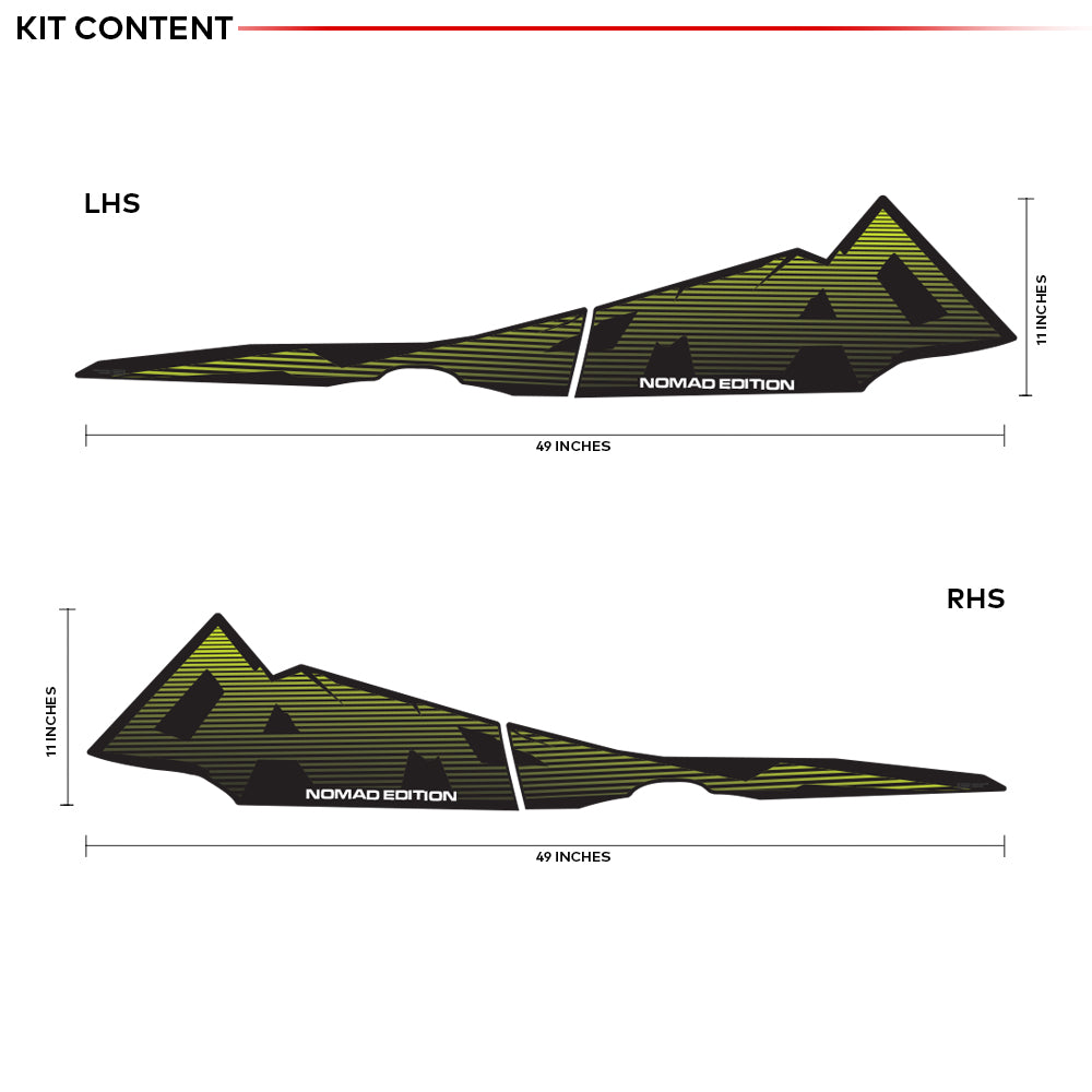 Unleash the Wanderlust in you. The Nomad Edition Decal is a stylish and modern graphic aimed at giving the kushaq a contemporary edge. The graphic embodies the spirit of adventure and exploration with its uniquely representation of the mountains.