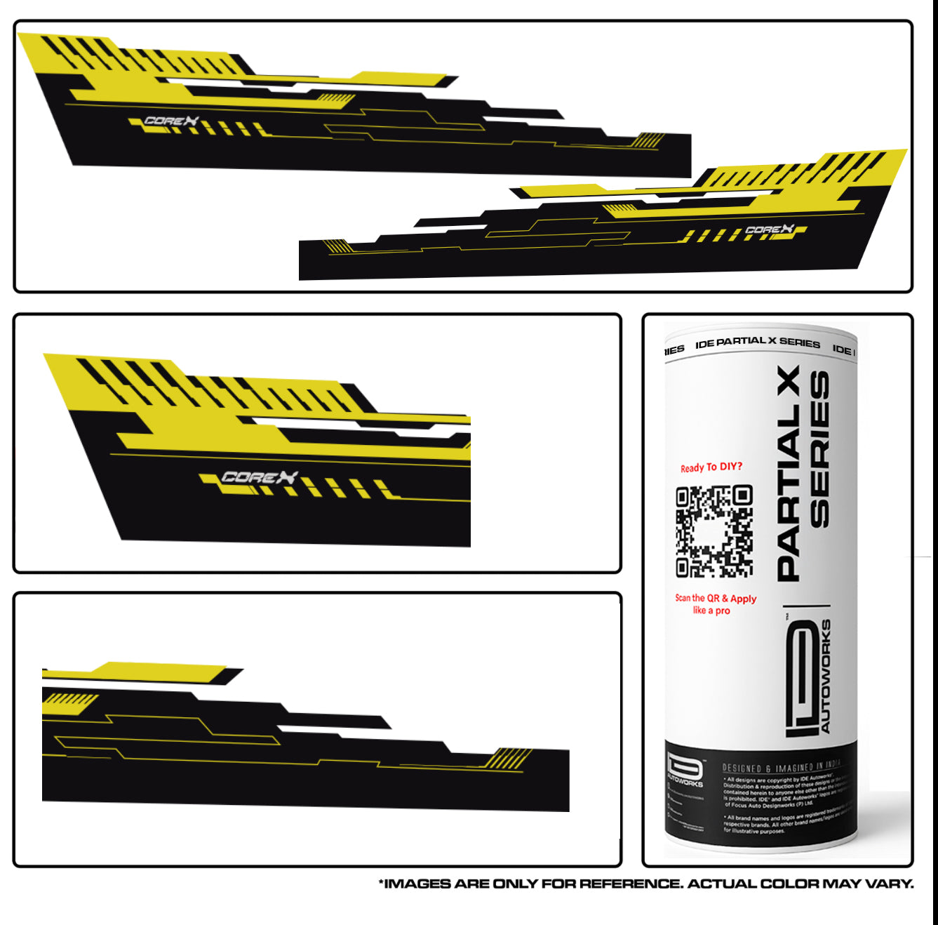 A bold, race-inspired graphic package with Black-Yellow streaks and tech-style detailing. Part of the Partial X Series, the CorX Edition adds aggressive style and street-ready attitude to your hatchback.