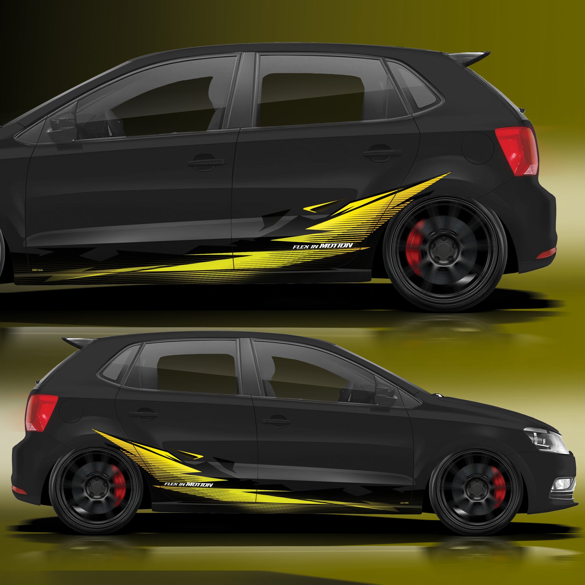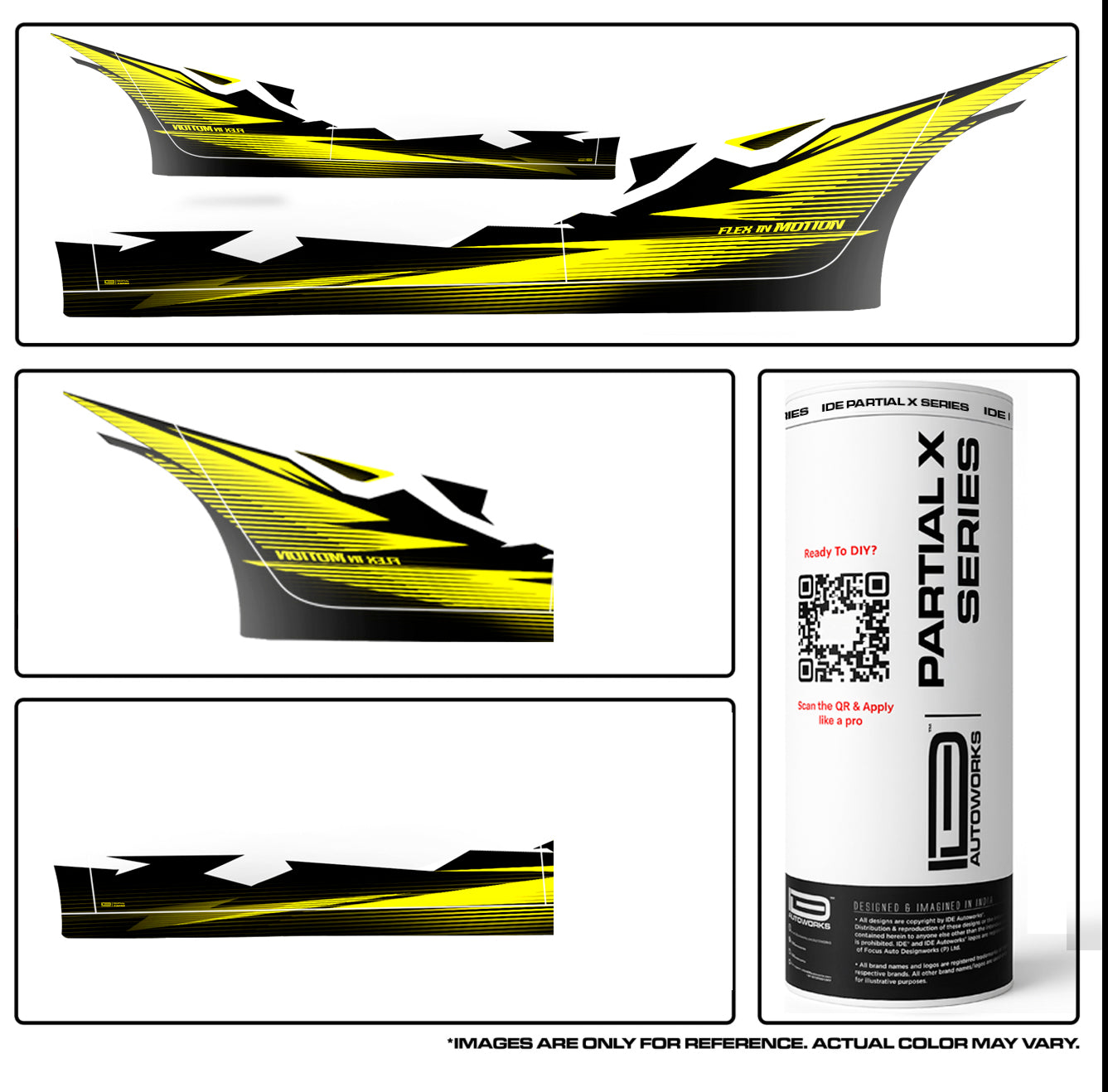 Designed to express speed and fluidity, the Flex in Motion edition features sweeping Yellow-black gradients with angular motion cuts. This bold, aerodynamic graphic treatment adds a sense of movement and style, making your hatchback look fast even at a standstill.