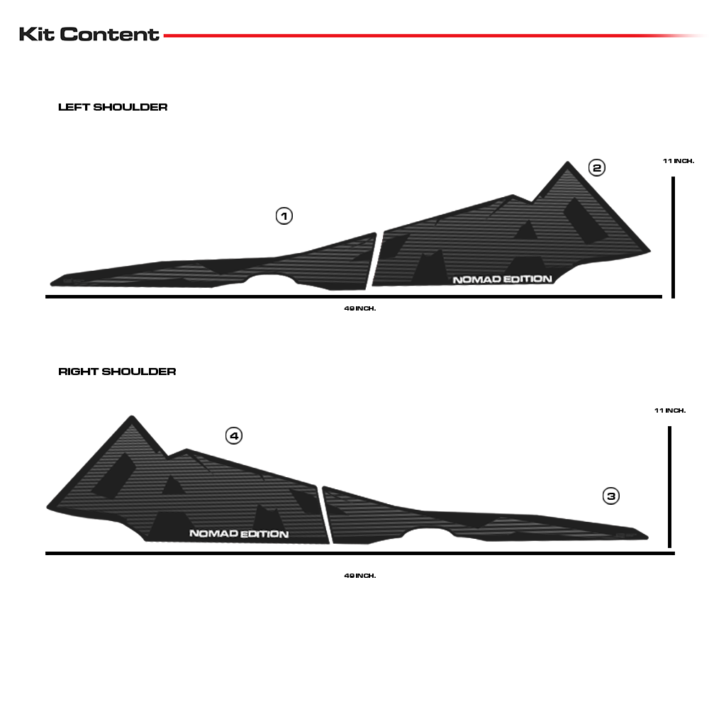 Unleash the Wanderlust in you. The Nomad Edition Decal is a stylish and modern graphic aimed at giving the Taigun a contemporary edge. The graphic embodies the spirit of adventure and exploration with its uniquely representation of the mountains.