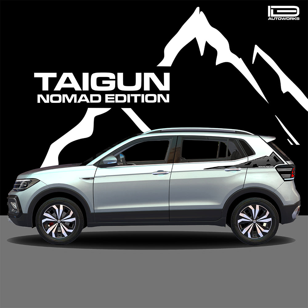 Unleash the Wanderlust in you. The Nomad Edition Decal is a stylish and modern graphic aimed at giving the Taigun a contemporary edge. The graphic embodies the spirit of adventure and exploration with its uniquely representation of the mountains.