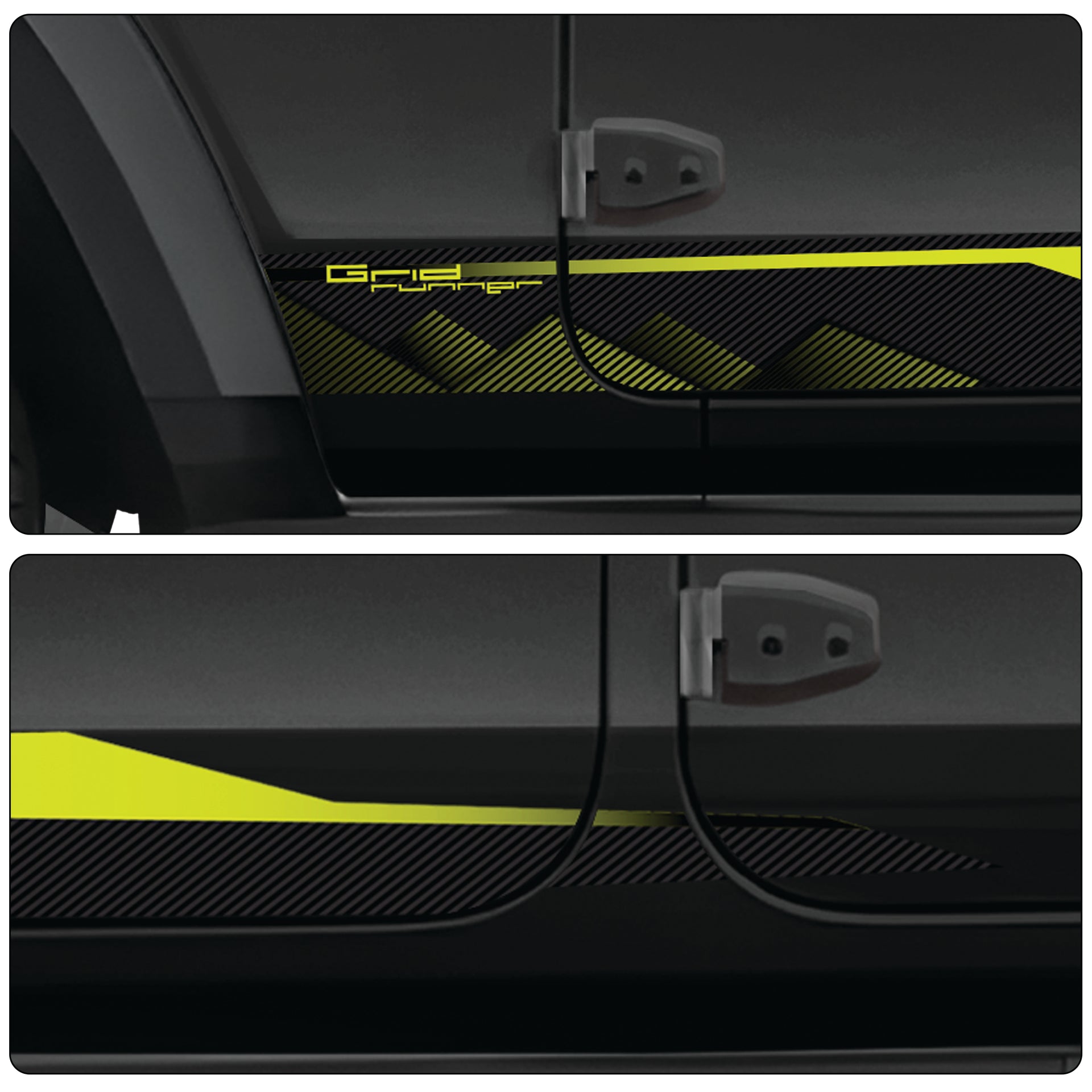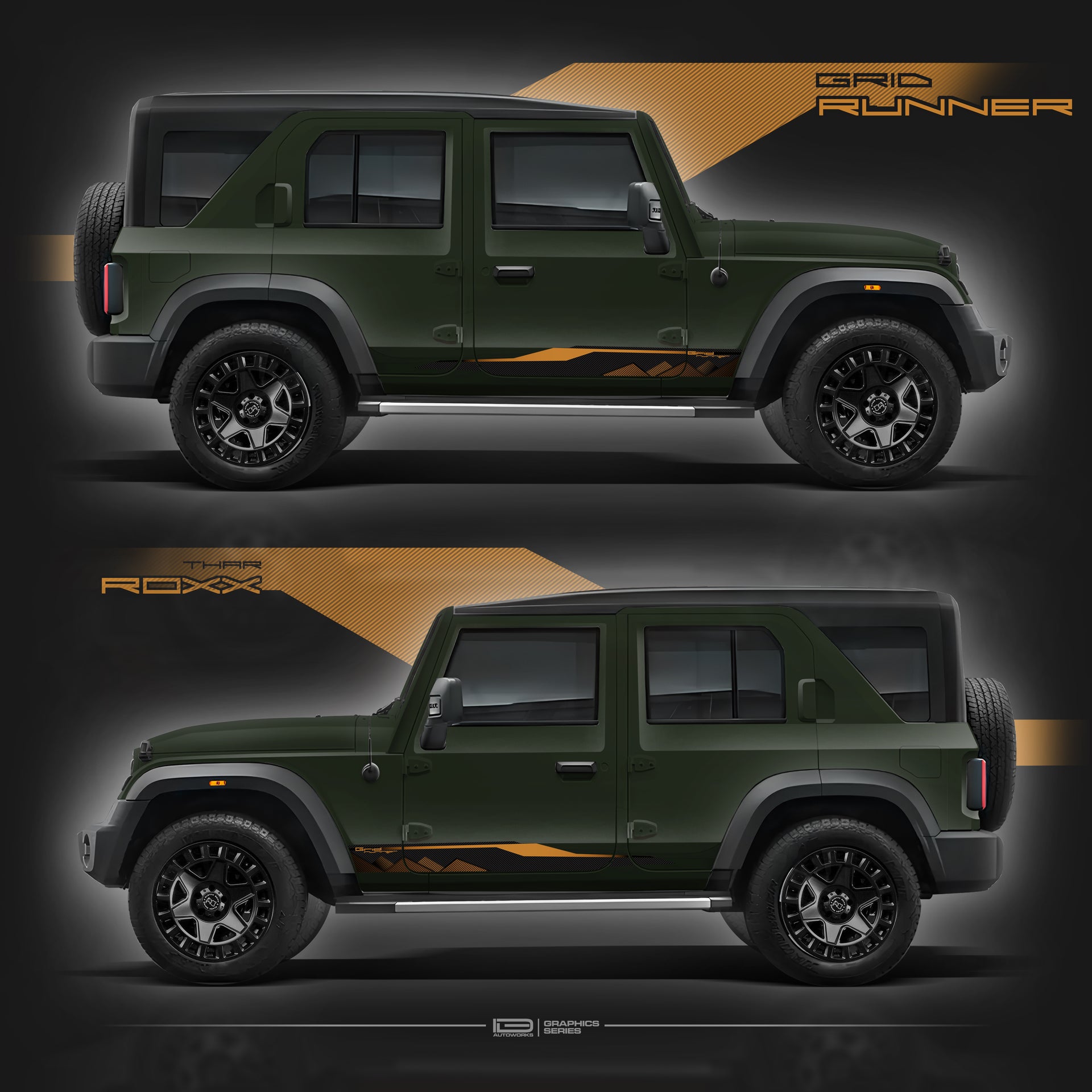 The Grid Runner Edition from the IDE Graphics Series brings a sleek, structured design to the sides of your Mahindra Thar Roxx. Inspired by technical grid patterns and the clean lines of engineered performance, this edition is perfect for those who want a modern, minimal aesthetic without committing to a full-body wrap.